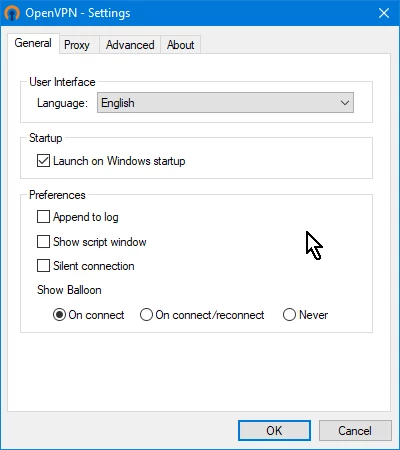 You can start with the default value and actions, because of utilizing the system service, the GUI doesn’t need elevated privileges to run. An icon appears in the system tray for the OpenVPN client that is used to connect or disconnect from VPN services. It also gives other important information, such as connection logs.